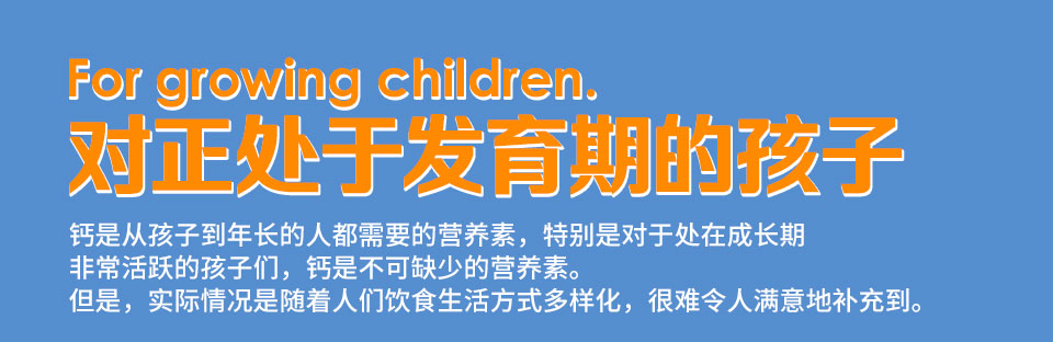 钙是从孩子到年长的人都需要的营养素,特别是对于处在成长期非常活跃的孩子们,钙是不可缺少的营养素。