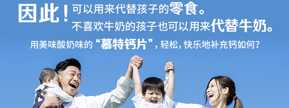 因此,可以用来代替孩子的零食。不喜欢牛奶的孩子也可以用来代替牛奶。用美味酸奶味的"慕特钙片",轻松,快乐地补充钙如何?