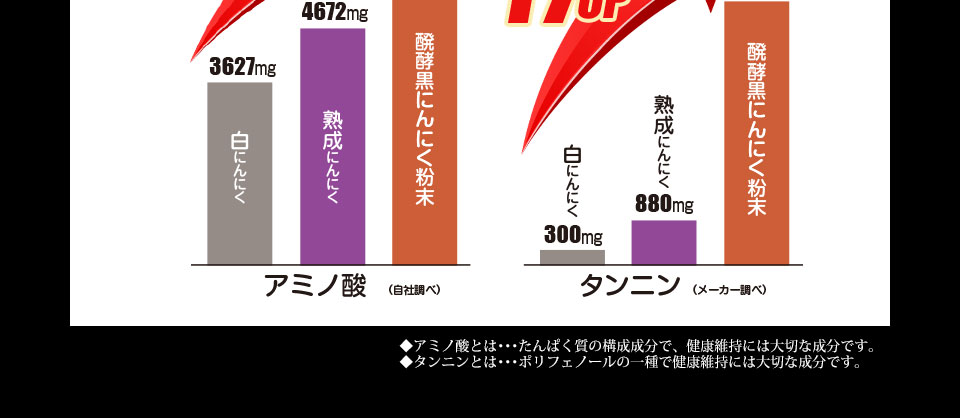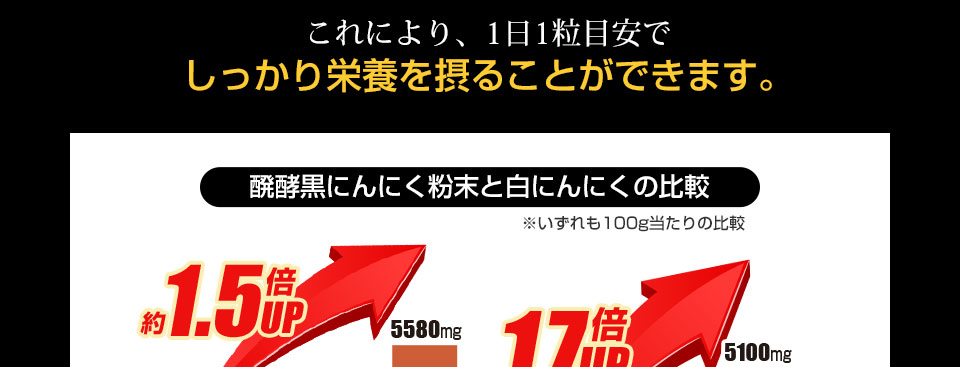 | 原材料名 | 醗酵黒にんにく粉末(国内製造)、食用油脂、卵黄油(卵を含む) / フィッシュゼラチン、グリセリン、増粘剤(ミツロウ)、グリセリン脂肪酸エステル、植物レシチン(大豆由来) |